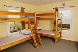 five miles away. Our house has two rooms with three bunk beds to accommodate six people each; one will be all women, the other, potentially mixed. Bring your own bedding or sleeping bag and towel. You might want to bring a swimsuit, too, in case there are sign-up slots available for the cliffside hot tub.